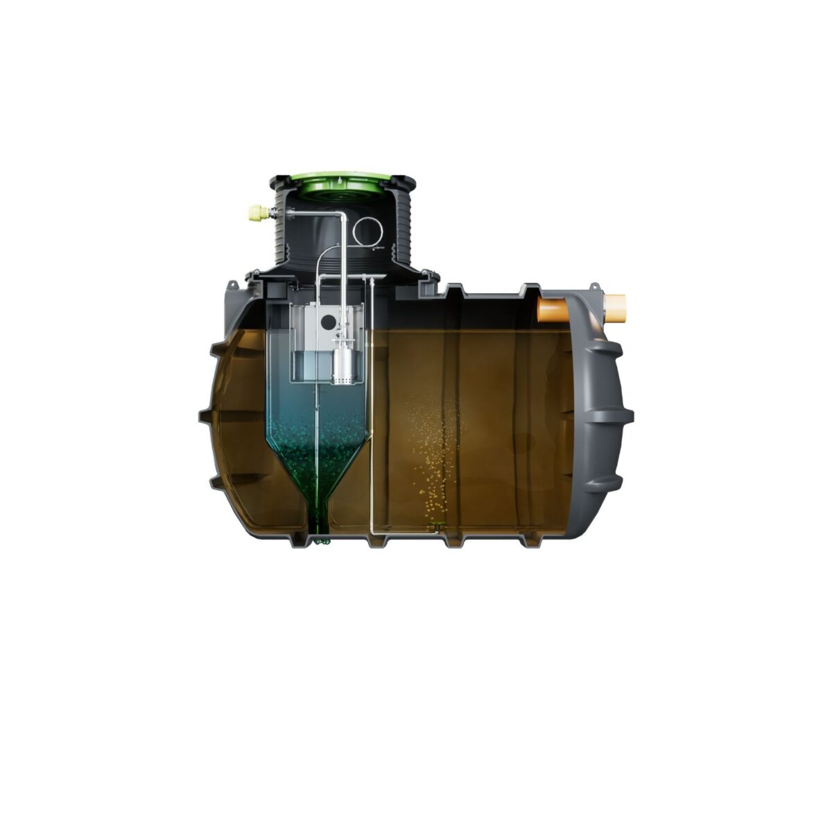 Poate fi echipată cu o stație de pompare integrată pentru apele uzate tratate (SPI), cu pompă de înaltă eficiență și plutitor, pentru evacuarea forțată a apei tratate.